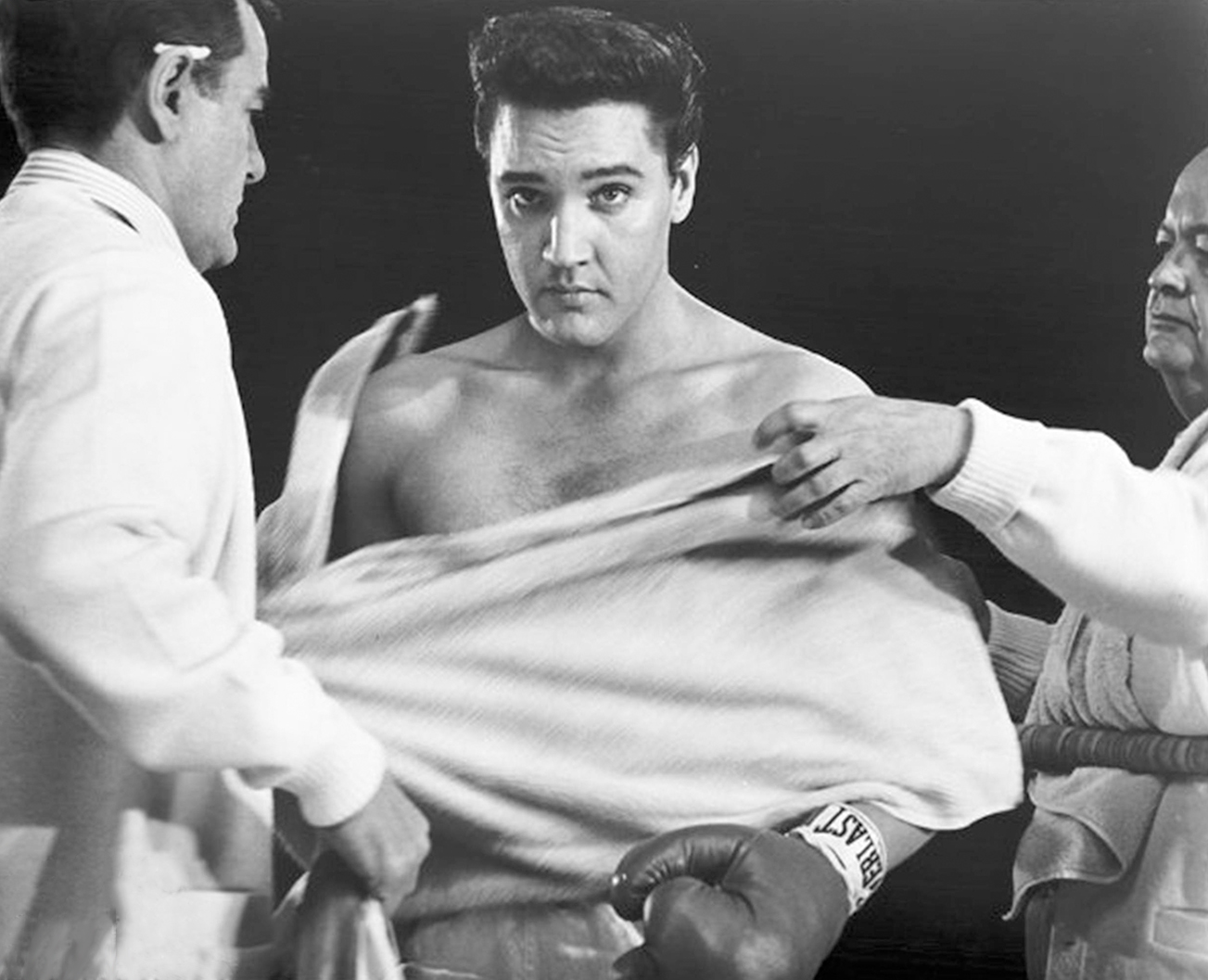 Scene from the movie with Gig Young as Willy Grogan and Robert Emhardt as Maynard.MOVIE DIRECTORYMOVIE TRAILERKiD GaLaHadThe original 1937 movie version of "KID GALAHAD" starred Edward G. Robinson, Bette Davis, and Humphrey Bogart. In 1941, "KID GALAHAD" was remade with Bogart again using a circus setting and was renamed "THE WAGONS ROLL AT NIGHT." The 1962 version starring Elvis Presley was turned into a musical using the original name, "KID GALAHAD."BASED ON THE BOOK BY FRANCIS WALLACELOCATION Click here to read "KID GALAHAD"Walter Gulick returning to Cream Valley, New York after his Army discharge.KiD GaLaHad"KID GALAHAD" was filmed at the Hidden Lodge in Idyllwild, California. When a fierce storm blew in, it forced the crew to move filming to Hollywood.LOCATION PREVIOUSBOX OFFICE KiD GaLaHadUnited Artists released the film in the United States on Wednesday, August 29, 1962. It reached #9 on Variety's list of top-grossing films for that week. It was ranked #37 for the year and grossed $1,750,000 in the United States.BOX OFFICE LOCATIONCAST CASTKiD GalaHad BOX OFFICECAST CONTINUES Elvis Presley as Walter GulickLiam Redmond as Father HigginsRobert Emhardt as MaynardJudson Pratt as Howard ZimmermanRoy Roberts as Jerry BathgateEdward Asner as Frank GersonCharles Bronson as Lew NyackJoan Blackman as Rose GroganLola Albright as Dolly FletcherGig Young as Willy GroganNed Glass as Max LiebermanJohn Gonsalves as Walter Gulick's stunt doubleElvis astride a police motorcycle during the filming of "KID GALAHAD."KiD GaLaHadMOVIE DIRECTORY CASTPLOT NEXT CAST (CONTINUED)Elvis was tutored in the art of pugilism by former world junior welterweight champion Mushy Callahan, who appeared in the film as well. Reigning welterweight champion Orlando De La Fuente also appeared as Ramon "Sugar Boy" Romero. John Gonsalves, the professional light-weight boxer played the boxing stunt double for Elvis Presley.KiD GaLaHadPLOT SUMMARIZEDBACK TO MOVIE DIRECTORYRecently discharged ex-G.I. Walter Gulick (played by Elvis Presley) returns to the quiet little town of his birthplace, Cream Valley, New York. Broke from gambling away his Army separation pay, he searches out Willy Grogan (played by Gig Young), in desperation for a mechanic’s job. Grogan, along with being a small-time boxing promoter, also owns the Grogan Gaelic Inn and has a gambling addiction which has put him in debt to mobsters. When Grogan learns of Walter’s expertise in the ring, he dupes Walter into becoming a boxer. Things heat up when the mob tries to muscle in on the betting action by trying to force Walter to "take a dive" in his final fight.MOVIE PURCHASELOBBY CARDSOUNDTRACK NEXT CASTSOUNDTRACKKiD GaLaHadMOVIE DIRECTORYThe soundtrack for the 1962 film Kid Galahad primarily features six songs performed by Elvis Presley, and is available for purchase on various physical formats like CD and vinyl, often with bonus tracks or as part of larger collections. PLOT