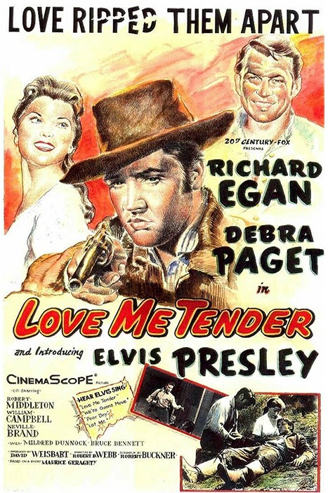 On location during the filming.MOVIE'S TITLE CHANGE CLICK TO WATCH TRAILERLOVE ME TENDERELVIS PRESLEY'S PREMIER MOVIEThis 1956 Western was originally named "THE RENO BROTHERS." It was changed to "LOVE ME TENDER" after Elvis's hit single "LOVE ME TENDER" passed one million in advanced sales, which was the first time in history for a single to receive gold status before being released.TITLE CHANGEElvis on location during the filming. PREVIOUSRELEASE DATE LOVE ME TENDERLOVE ME TENDERRELEASE DATE"LOVE ME TENDER'S" premier was shown by Twentieth Century Fox on Thursday, November 15, 1956. The movie was released to the public on Wednesday, November 21, 1956."WE'RE GONNA MOVE" (Click Here for Movie Scene) TITLE CHANGEBOX OFFICE LOVE ME TENDERBOX OFFICEYou would not have known Richard Egan and Debra Paget received top billing because it was Elvis's name that brought in the massive crowds. Teenagers across the country acted out their truancy coups. They boldly skipped school to attend the public's opening day, helping to make "LOVE ME TENDER'S" 1956 Box Office earnings jump. With an estimated budget of $1,000,000, the movie grossed $4,500,000 (equivalent to $43,736,306 in 2021) in the United States and grossed $9,000,000 worldwide. RELEASE DATECAST NEXT THE FIRST AND LAST TIME ELVIS WOULD NOT RECEIVE TOP BILLING.LOVE ME TENDER'S CASTElvis Presley as Clint RenoElvis on location with Richard Egan and Debra Paget. BOX OFFICE CAST (CONTINUES) Richard Egan as Vance RenoDebra Paget as Cathy RenoWilliam Campbell as Brett RenoRobert Middleton as Mr. SiringoMildred Dunnock as Martha RenoJames Drury as Ray RenoNeville Brand as Mike GavinBruce Bennett as Major KincaidCAST (CONTINUED)MOVIE POSTERWhen Elvis was cast for the role of Clint, he had already signed with Hal Wallace at Paramount Pictures who had a loan-out agreement with 20th Century Fox. Twentieth Century Fox was thrilled to acquire Elvis for the movie, but they did not want the Blue Moon Boys (Elvis's band). According to Scotty Moore, the movie studio decided to placate Elvis, they would pretend to audition his band. They purposely did not tell the band the movie was a western. Consequently, the band who had been the Starlight Wranglers, a Country & Western band before becoming the Blue Moon Boys, performed Rock 'N' Roll at the audition. After they played they were told, "No, that's not what we're looking for." For more information on this topic, see:Chapter 4 - Pages 94 to 100 CAST BEGINSPLOT NEXT The Blue Moon Boys were never a true consideration for the part because Ken Darby, the movie's Musical Director had the musicians he wanted to use. This pleased Tom Parker (Elvis's manager) to no end. Parker had been trying to get rid of the Blue Moon Boys for quite some time and anything else pre-dating Parker's management of Elvis. In Parker's eyes, not using the band would show Elvis he didn't need them.LOVE ME TENDERTHIRTY PIECES OF SILVER: THE BETRAYAL OF ELVIS PRESLEYThe end of the Civil War was April 10, 1865, and is the date used for the onset of the movie, where three of the four Reno brothers, Vance (played by Richard Egan), Brett (played by William Campbell), and Ray (played by James Drury), are serving in a Confederate Army unit, Randall's Cavalry Brigade. Randall's Calvary attacks a Union train station in Greenwood, Louisiana, take the Union soldiers as prisoners, and disguises themselves by donning the Union's uniforms. When a train arrives carrying a Federal payroll of $12,250, Randall's disguised Calvary robs the paymaster and makes off with the loot. When they learn the war has ended, instead of turning the payroll into the Federal government, they divvy up the money equally amongst themselves, justifying they stole the money before they knew the war was over. Vance believed with this money he would finally be able to marry his longtime fiancé, Cathy (played by Debra Paget), who had been waiting on him for four years.In the meantime, the brothers bury their share of the money in the barn, not letting the rest of the family know of the stolen payroll.On the way home, the Reno brothers stop off at a General Store making small purchases with their shares, which later in the movie gave and proof as to how they procured the money. CASTPLOT CONTINUES When they reached the family farm, Vance swoops Cathy up in his loving arms not knowing his younger brother, Clint Reno (played by Elvis Presley), married Cathy three months before his brother's return. Vance tries to play it cool as if he is okay with the situation of Clint being married to Cathy. A situation that would not have occurred, if the Reno family hadn't received a faulty message saying Vance had been killed in action. Clint, who was the youngest Reno brother, stayed home to take care of the family farm. When Cathy's family was killed by Union soldiers, she went to live with the Reno family.As the Reno brothers settle back to normal farm life, Cathy makes it obvious that she is still in love with Vance; those feelings become evident to Clint. To keep the peace, Vance decides to leave the farm and head out west (leaving most of the money behind for his family) the following day, after they attend the town's school raising. Vance's plan is thwarted when Union Major Kinkaid (played by Bruce Bennett) and Mr. Sringo (played by Robert Middleton) take the Reno brothers into custody during the school raising.That evening Mike Gavin (played by Neville Brand) and two more ex-Confederates of Randall's Raiders (referred to as Gavin's crew from this point) who were in on the theft, stop by the Reno farm to warn the brothers that the law is looking for them. Clint, who believes the allegations against his brothers are false, informs Gavin's crew that his brothers were arrested and are presently on a train going to Tyler to be identified by the paymaster. Clint joins Gavin and his crew to assist with helping his brothers escape.MOVIE RENTALLOVE ME TENDERPLOT: SPOILER ALERTLOVE ME TENDERPLOT: SPOILE